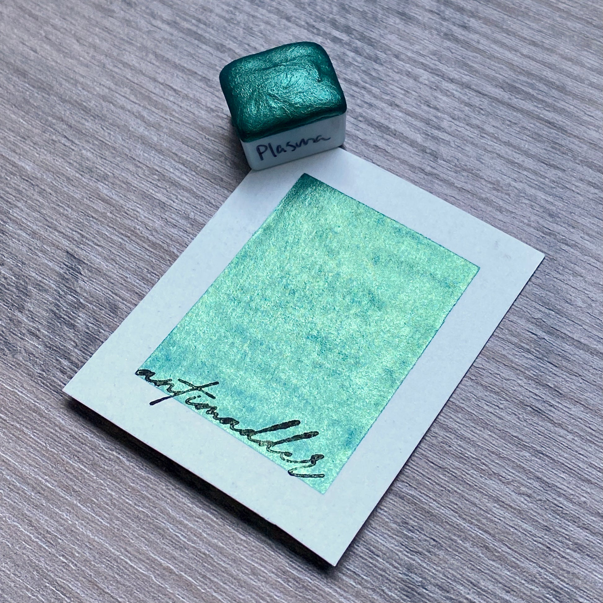 Plasma is a shimmery greenish teal watercolor paint.