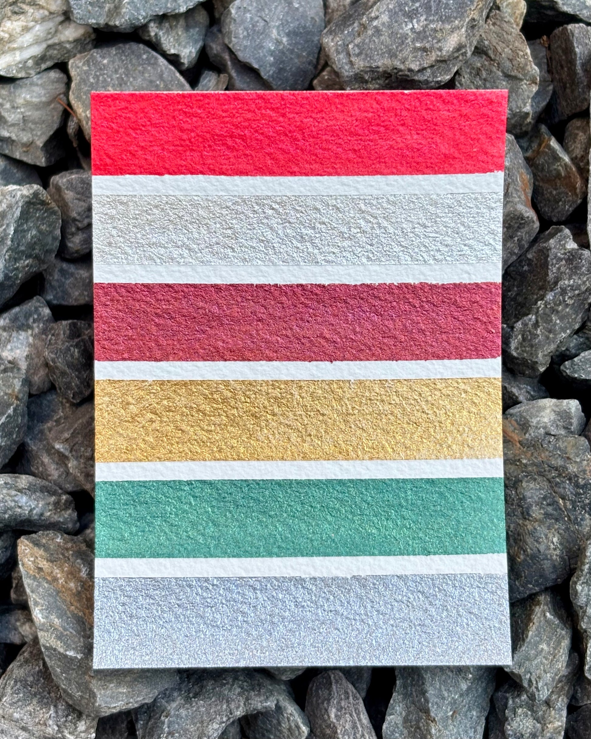 The 'Tis the Season dot card is a collection of six shimmery watercolors in Christmas colors. Four of the colors can also be found in other collections; the other two are new and exclusive to 'Tis the Season: